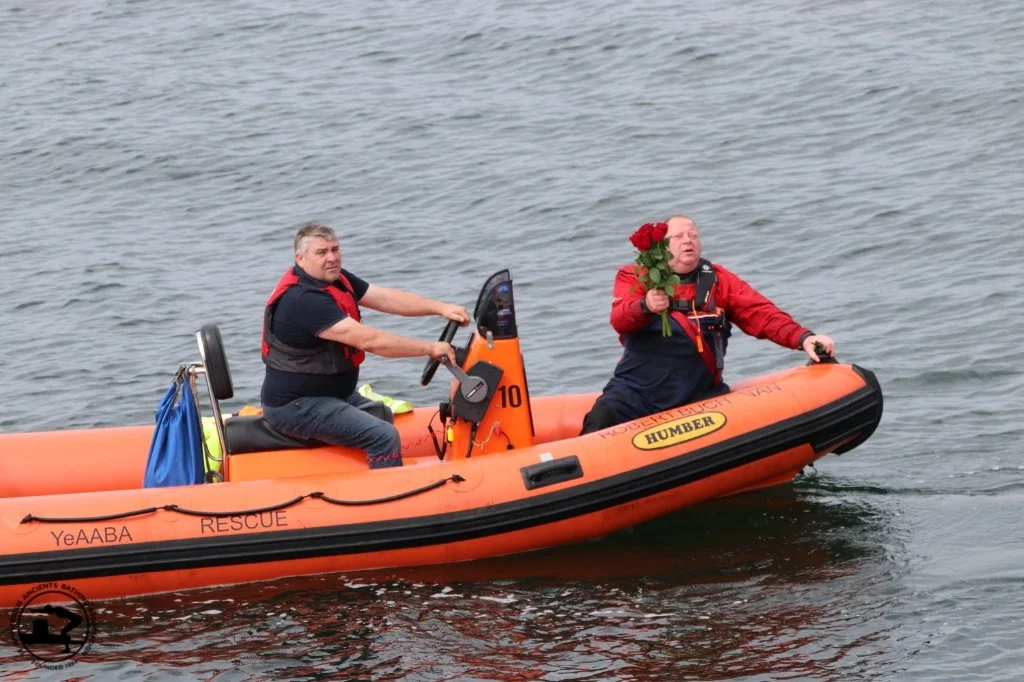 Before the event flowers were placed in the Tay in memory of Peter Wardill and his wife, who were past members of YeAABA.