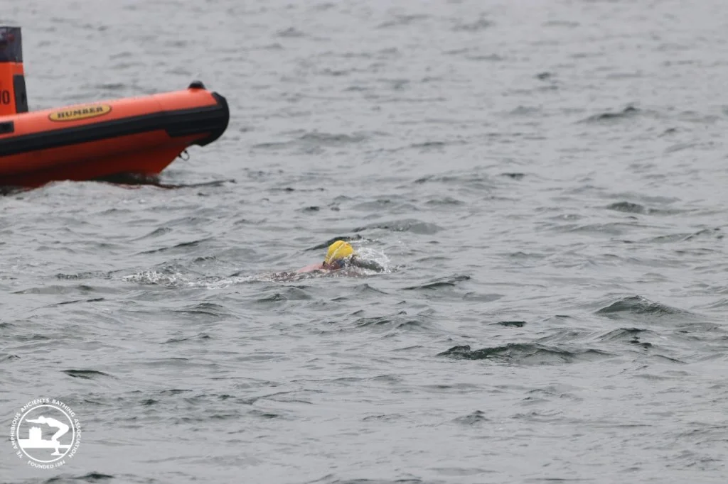 Richie Oparka completed the distance but due to being caught by the outgioing tide, was swept past the harbour wall and landed onshore at Brought Ferry Beach. He was presented with a completion certificate but could not be awarded a time in the event.